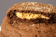 These two big pics are of the peanut butter ones, but most of them were just plain chocolate cookies with chocolate chips. I was really just experimenting with putting peanut butter in the middles of these, and they came out yummy. I was going to try this chocolate peanut butter munchies recipe, but I won't anymore because it's healthier if you just use peanut butter without the extra sugar and stuff. Easy recipe. Good cookies! I'd definitely make these again--maybe next time half with peanut butter and half without.